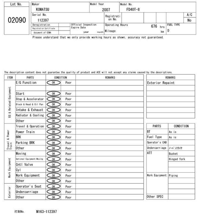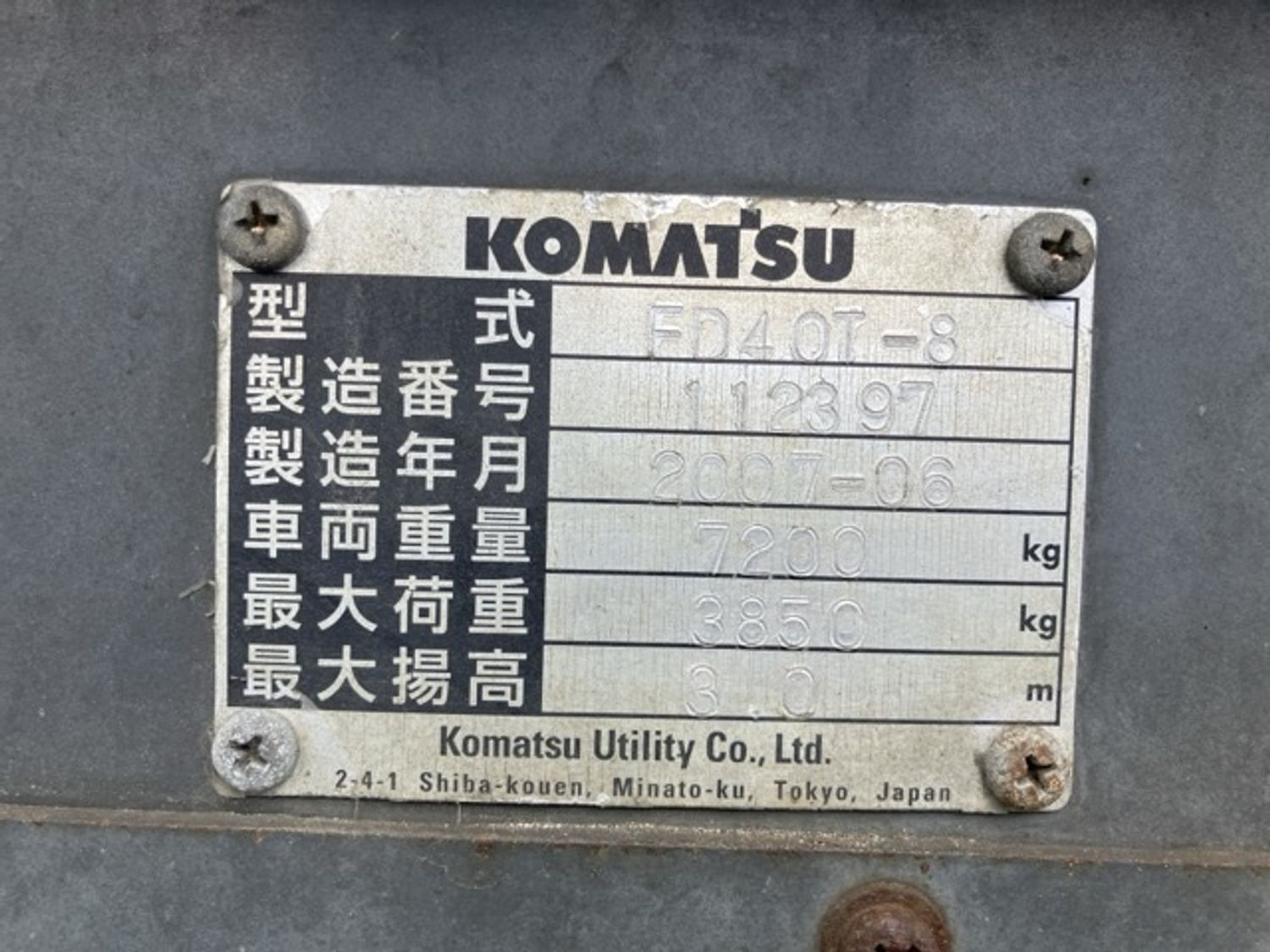Komatsu Сэрээт ачигч Diesel - Үйлдвэрлэсэн он 2007 - Хөдөлгүүр цахилгаан - Гүйлт 646 мот цаг - Өргөх өндөр 5.0 метер - Даац 4.0 тон Утас 80270395