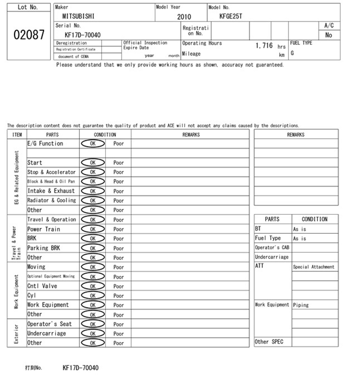 Mitsibushi Сэрээт ачигч - Үйлдвэрлэсэн он 2010 - Хөдөлгүүр diesel - Гүйлт 1716 мот цаг - Өргөх өндөр 3.0 метер - Даац 2.5 тон Утас 80270395