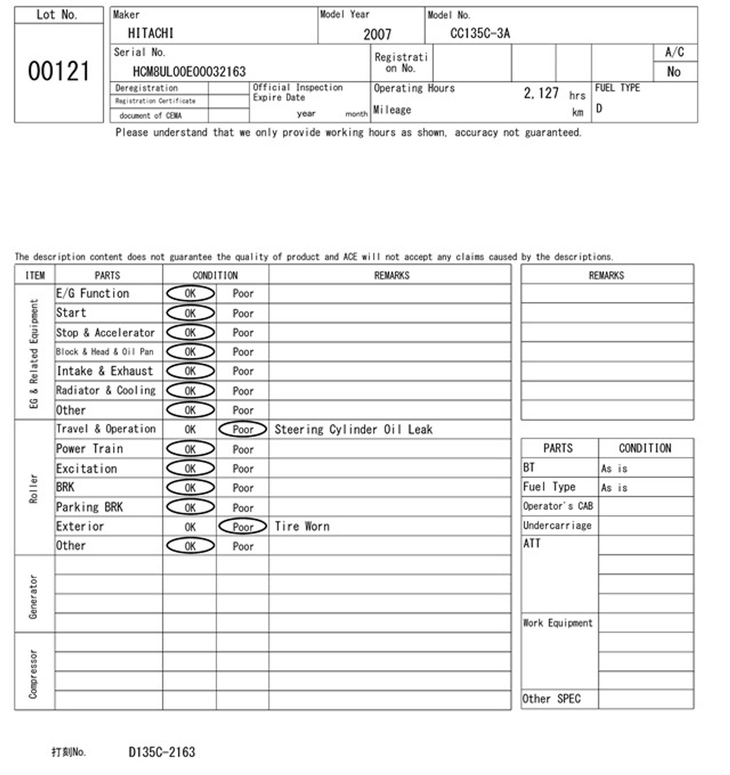 Hitachi cc135c индүү