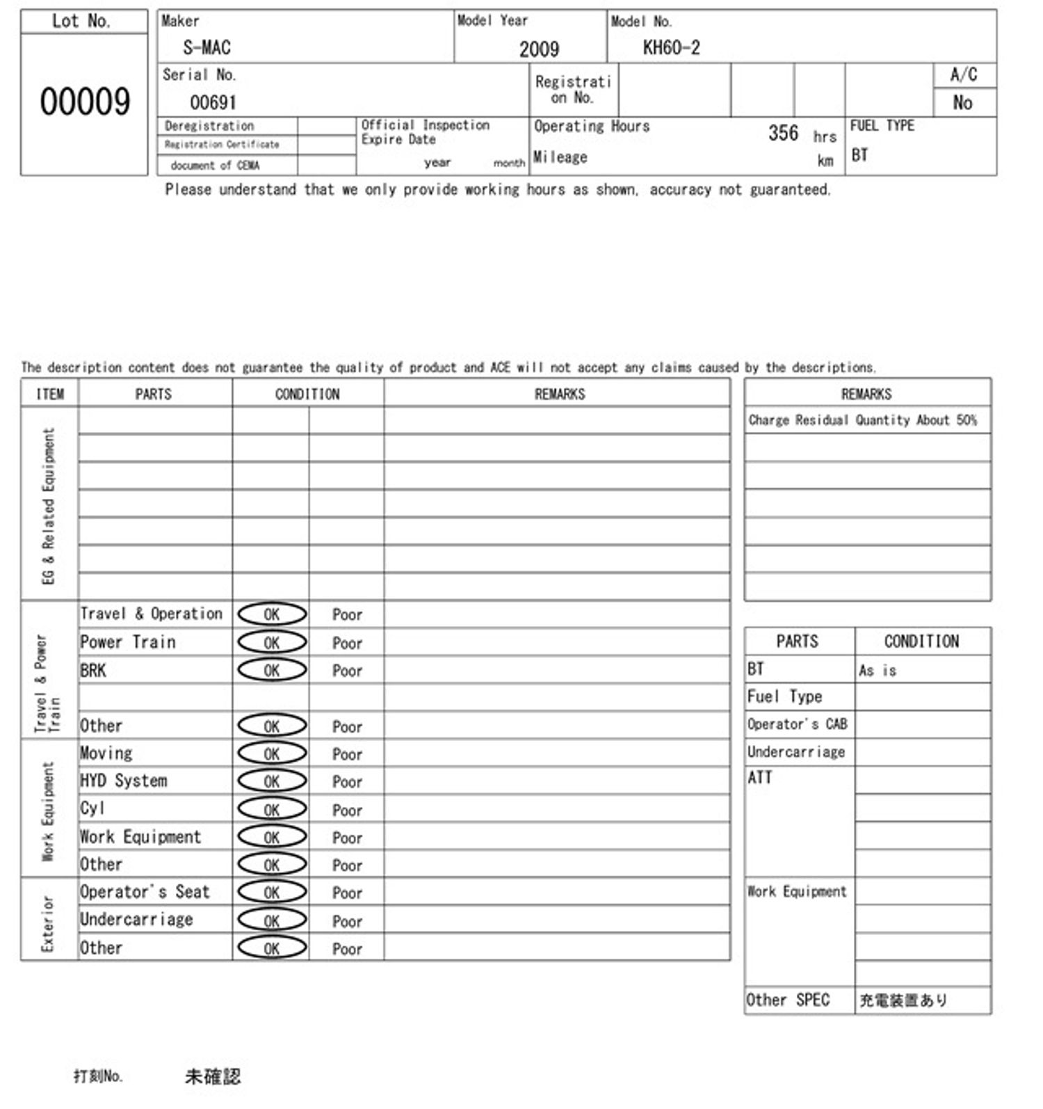 S-mac хайчин өргүүр цахилгаан - Үйлдвэрлэсэн он 2009 - Хөдөлгүүр цахилгаан - Гүйлт 356 мот цаг - Өргөх өндөр 6.0 метер - Даац 300 кг Утас 80270395
